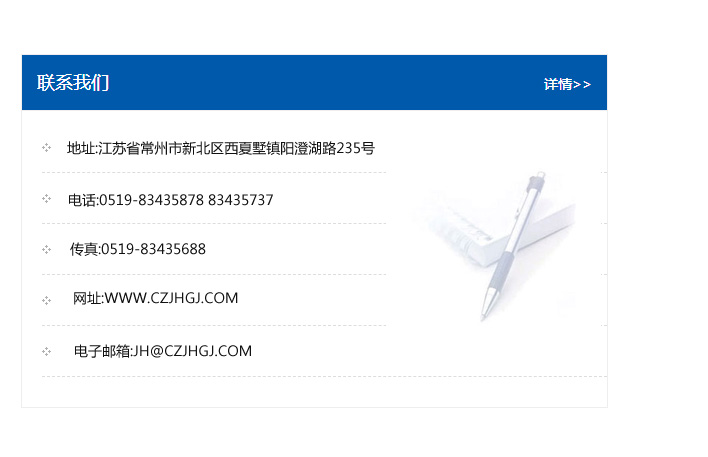 傳真:0519-83435688    郵編:213135    網址:WWW.czjhgj_com.daik66.com    電子郵箱:JH@czjhgj_com.daik66.com